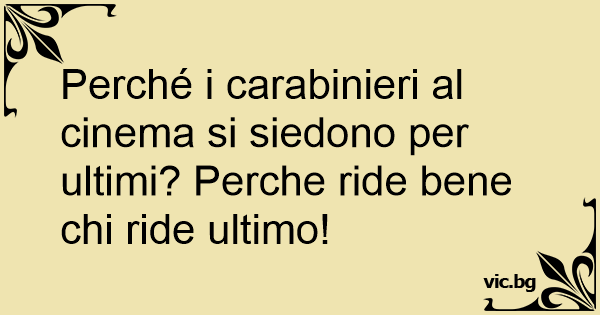 Perché i carabinieri al cinema si siedono per ultimi? Perche ride bene chi ride ultimo!