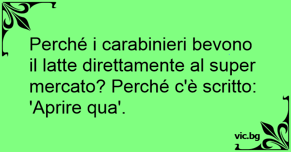 Mia moglie è arrabbiata perché quando mi mandava a fare la spesa io finivo sempre il latte nel supermercato e un giorno mi chiese il perché e io risposi: "Perché sulla confezione c'è scritto: apri...