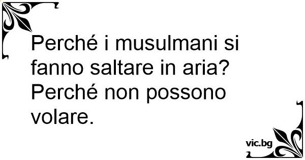 Perché i musulmani si fanno saltare in aria? Perché non possono volare.