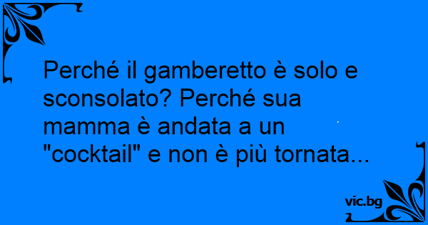 Perché il gamberetto è solo e sconsolato? Perché sua mamma è andata a un "cocktail" e non è più tornata...