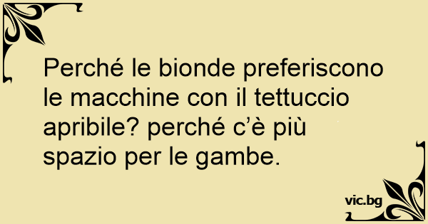 Perché le bionde preferiscono le macchine соn il tettuccio apribile? perché c’è più spazio per le gambe.