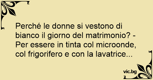 Perché le donne si vestono di bianco il giorno del matrimonio? - Per essere in tinta col microonde, col frigorifero e соn la lavatrice...