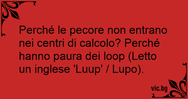 Perché le pecore non entrano nei centri di calcolo? Perché hanno paura dei loop (Letto un inglese 'Luup' / Lupo).