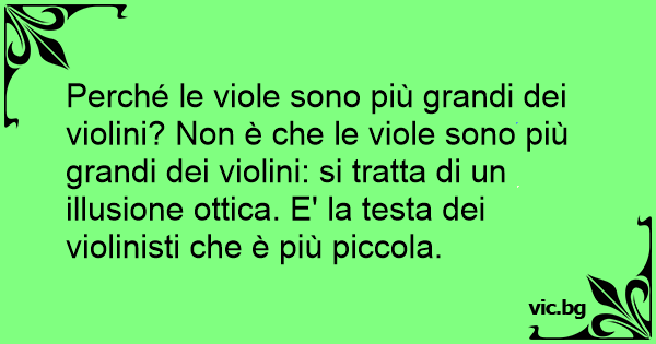 Perché le viole sono più grandi dei violini? Non è che le viole sono più grandi dei violini: si tratta di un illusione ottica. E' la testa dei violinisti che è più piccola.