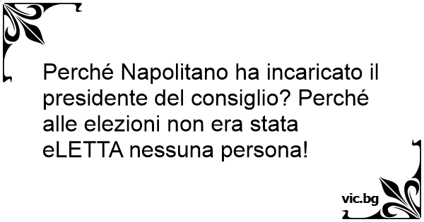 Perché Napolitano ha incaricato il presidente del consiglio? Perché alle elezioni non era stata eLETTA nessuna persona!