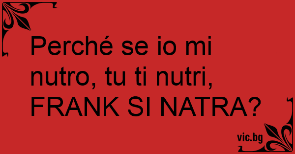 Perché se io mi nutro, tu ti nutri, FRANK SI NATRA?