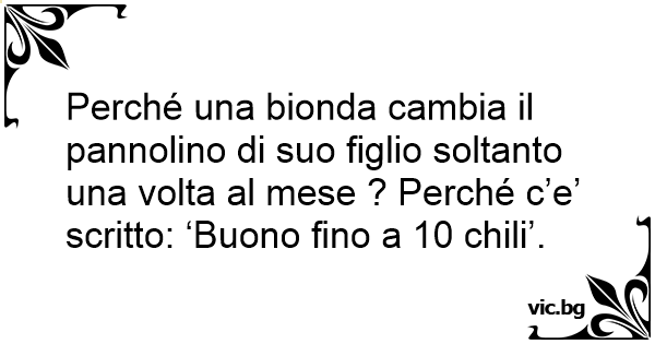Perché una bionda cambia il pannolino di suo figlio soltanto una volta al mese ? Perché c’e’ scritto: ‘Buono fino a 10 chili’.
