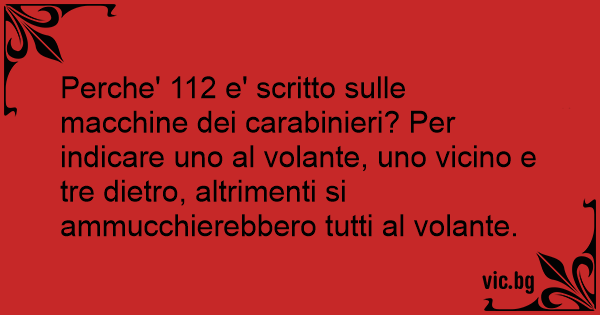 Perche' 112 e' scritto sulle macchine dei carabinieri? Per indicare uno al volante, uno vicino e tre dietro, altrimenti si ammucchierebbero tutti al volante.