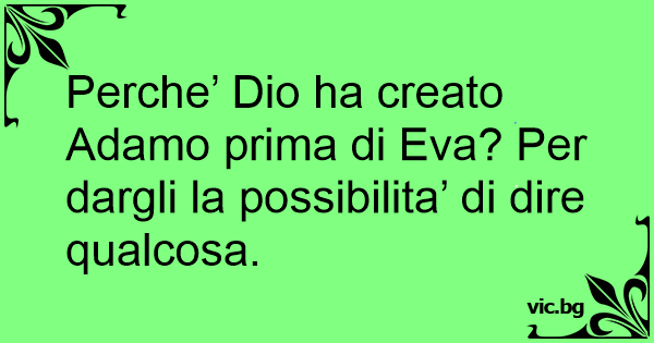 Perche’ Dio ha creato Adamo prima di Eva? Per dargli la possibilita’ di dire qualcosa.