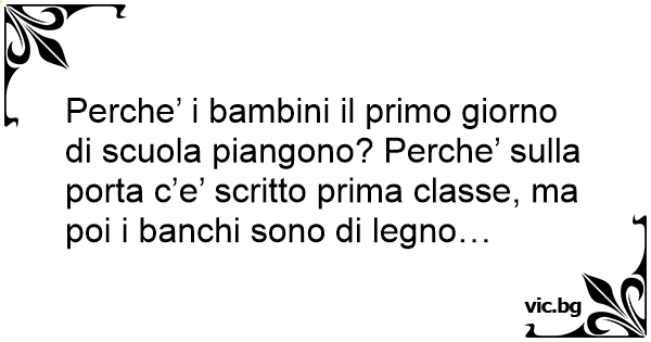 Perche’ i bambini il primo giorno di scuola piangono? Perche’ sulla porta c’e’ scritto prima classe, ma poi i banchi sono di legno…