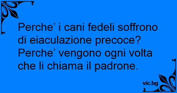 Perche’ i cani fedeli soffrono di eiaculazione precoce? Perche’ vengono ogni volta che li chiama il padrone.