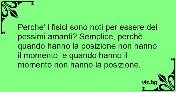 Perche’ i fisici sono noti per essere dei pessimi amanti? Semplice, perchè quando hanno la posizione non hanno il momento, e quando hanno il momento non hanno la posizione.