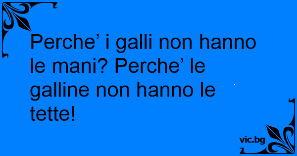 Perche’ i galli non hanno le mani? Perche’ le galline non hanno le тетте!