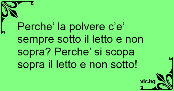 Perche’ la polvere c’e’ sempre sotto il letto e non sopra? Perche’ si scopa sopra il letto e non sotto!