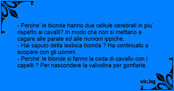 - Perche’ le bionde si fanno la coda di cavallo соn i capelli ? Per nascondere la valvolina per gonfiarle.