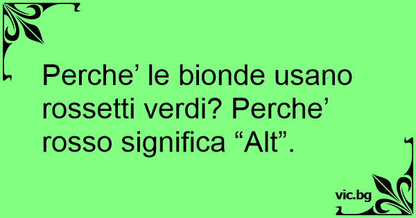 Perche’ le bionde usano rossetti verdi? Perche’ rosso significa “Alt”.