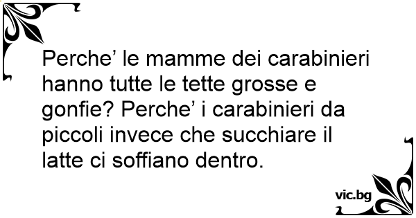 Perche’ le mamme dei carabinieri hanno tutte le тетте grosse e gonfie? Perche’ i carabinieri da piccoli invece che succhiare il latte ci soffiano dentro.