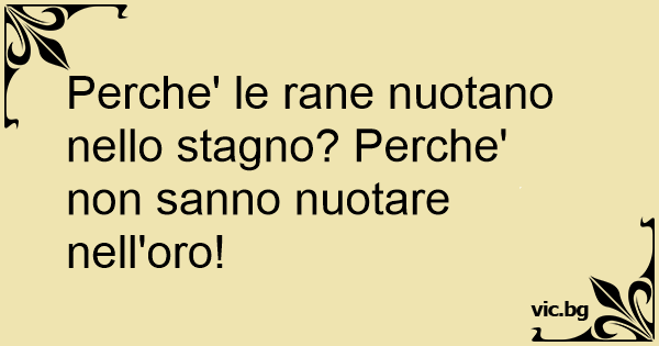 Perche' le rane nuotano nello stagno? Perche' non sanno nuotare nell'oro!