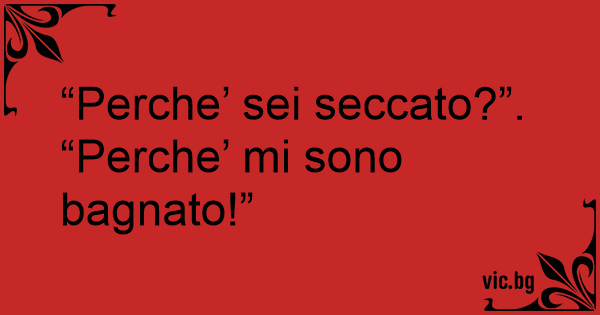“Perche’ sei seccato?”.<br />“Perche’ mi sono bagnato!”