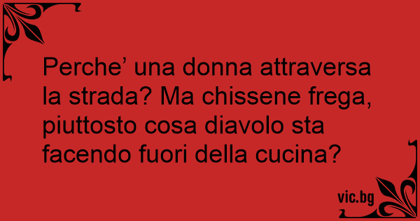 Perche’ una donna attraversa la strada? Ma chissene frega, piuttosto cosa diavolo sta facendo fuori della cucina?