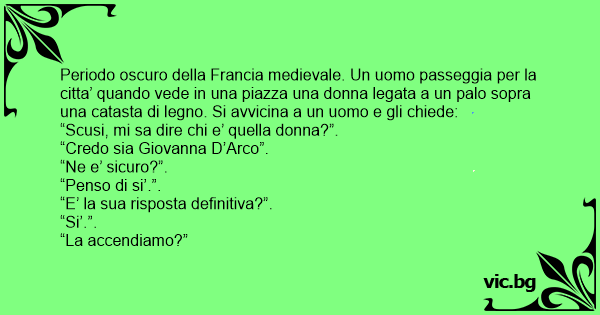 Periodo oscuro della Francia medievale. Un uomo passeggia per la citta’ quando vede in una piazza una donna legata a un palo sopra una catasta di legno. Si avvicina a un uomo e gli chiede: