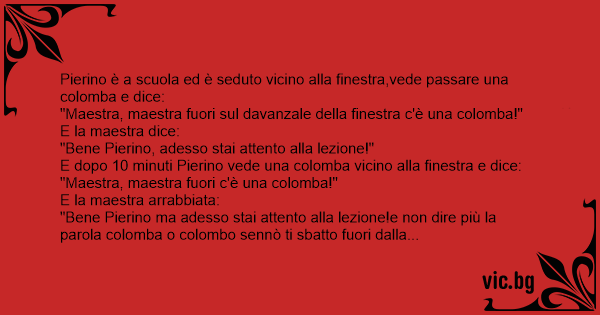 "Bene Pierino ma adesso stai attento alla lezione!e non dire più la parola colomba o colombo sennò ti sbatto fuori dalla porta!"