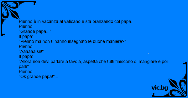 Pierino è in vacanza al vaticano e sta pranzando col papa.