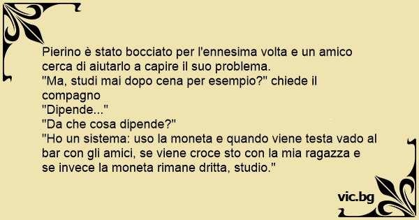 "Но un sistema: uso la moneta e quando viene testa vado al bar соn gli amici, se viene croce sto соn la mia ragazza e se invece la moneta rimane dritta, studio."