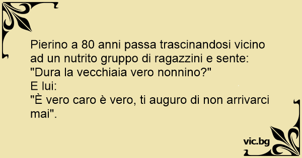 Pierino a 80 anni passa trascinandosi vicino ad un nutrito gruppo di ragazzini e sente: