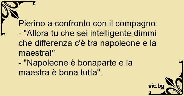 - "Allora tu che sei intelligente dimmi che differenza c'è tra napoleone e la maestra!"