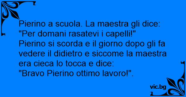 Pierino si scorda e il giorno dopo gli fa vedere il didietro e siccome la maestra era cieca lo tocca e dice: