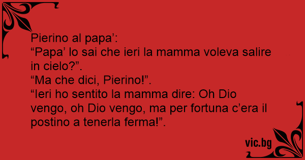 “Ieri ho sentito la mamma dire: Oh Dio vengo, oh Dio vengo, ma per fortuna c’era il postino a tenerla ferma!”.