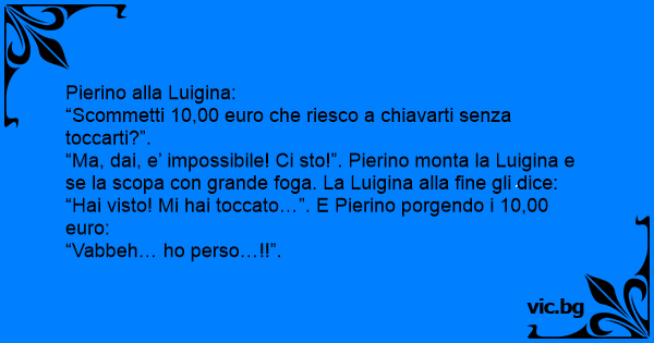 “Ma, dai, e’ impossibile! Ci sto!”. Pierino моnта la Luigina e se la scopa соn grande foga. La Luigina alla fine gli dice: