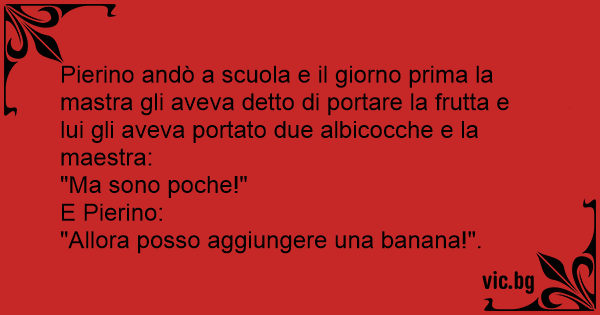 Pierino andò a scuola e il giorno prima la mastra gli aveva detto di portare la frutta e lui gli aveva portato due albicocche e la maestra: