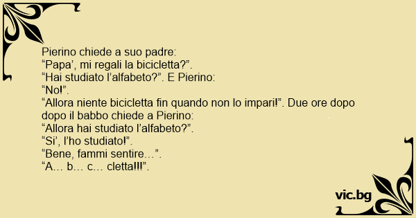 “Hai studiato l’alfabeto?”. E Pierino: