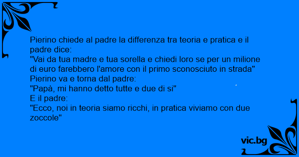 Pierino chiede al padre la differenza tra teoria e pratica e il padre dice: