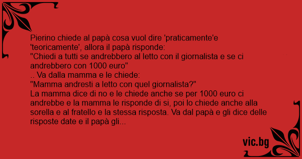 Pierino chiede al papà cosa vuol dire 'praticamente'e 'teoricamente', allora il papà risponde: