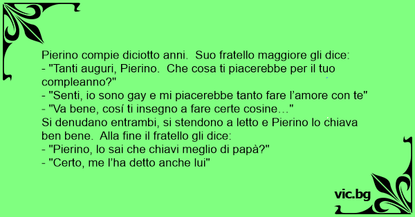 Pierino compie diciotto anni. Suo fratello maggiore gli dice: