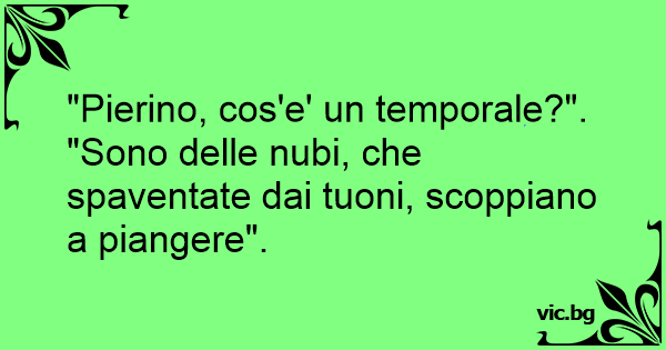 "Pierino, cos'e' un temporale?".<br />"Sono delle nubi, che spaventate dai tuoni, scoppiano a piangere".