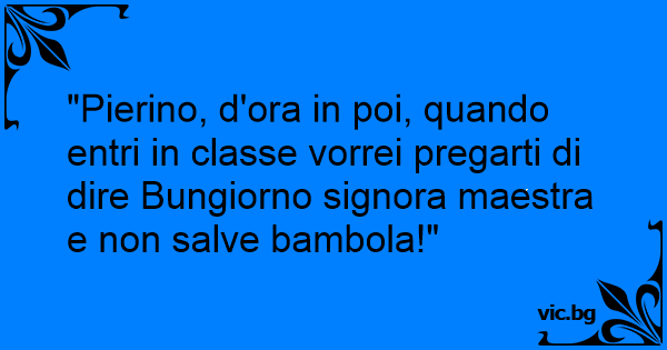 "Pierino, d'ora in poi, quando entri in classe vorrei pregarti di dire Bungiorno signora maestra e non salve bambola!"