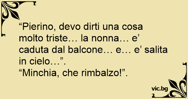 “Pierino, devo dirti una cosa molto triste… la nonna… e’ caduta dal balcone… e… e’ salita in cielo…”.
