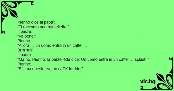 “Ma no, Pierino, la barzelletta dice: Un uomo entra in un caffe’ … splash!”