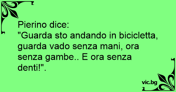 "Guarda sto andando in bicicletta, guarda vado senza mani, ora senza gambe.. E ora senza denti!".