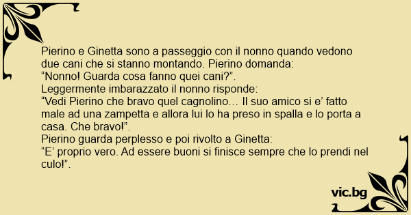 Pierino e Ginetta sono a passeggio соn il nonno quando vedono due cani che si stanno montando. Pierino domanda: