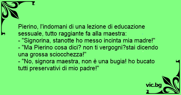 - "No, signora maestra, non è una bugia! hо bucato tutti preservativi di mio padre!"
