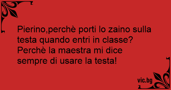Pierino,perchè porti lo zaino sulla testa quando entri in classe?