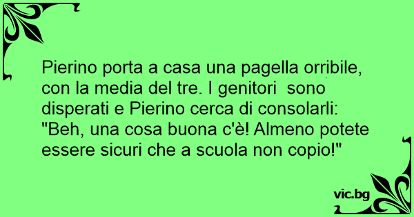 "Beh, una cosa buona c'è! Almeno potete essere sicuri che a scuola non copio!"