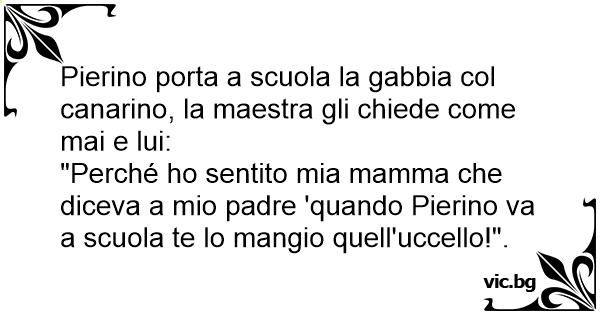 Pierino porta a scuola la gabbia col canarino, la maestra gli chiede come mai e lui: