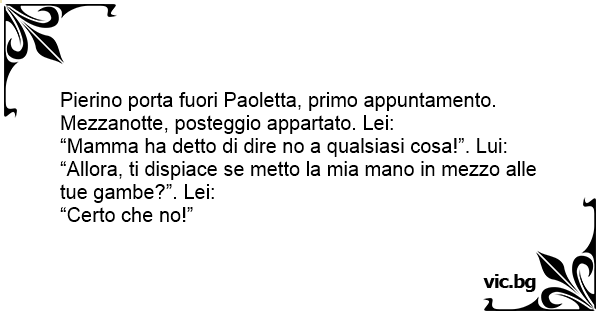 “Allora, ti dispiace se metto la mia mano in mezzo alle tue gambe?”. Lei: