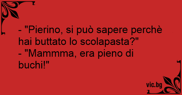 - "Pierino, si può sapere perchè hai buttato lo scolapasta?"